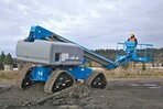Mit zwei besonders geländetauglichen Modellen ergänzt Genie seine breite Palette an Teleskopbühnen. Die neuen S-60 und S-65 Trax heben ihre Bediener auf maximale Arbeitshöhen von rund 20 und 21m – das ist nicht allzu viel, aber dafür kommen die Bühnen wirklich überallhin. Sie fahren nämlich nicht wie vergleichbare Hebebühnen nur auf zwei Gummiraupen, sondern gleich auf vier Raupenlaufwerken zu ihrem Einsatzort. Auch sandiger oder schlammiger Boden unterwegs sollte dabei kein Hindernis darstellen. Beim Vorwärtskommen können die jeweils 100cm langen, pendelnd gelagerten Laufwerke auch starke Bodenunebenheiten ausgleichen. Zudem erzeugen sie einen vergleichsweise niedrigen Bodendruck. Die Steuerung der Trax-Modelle funktioniert wie bei Genie-Hebebühnen auf Rädern. Letztere kann man übrigens auch mit den geländegängigen Raupenlaufwerken nachrüsten.