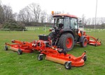 Zwei hinten, eine vorne: Drei Mäheinheiten am Traktor sieht das neue Mähkonzept des Ausstellers Wiedenmann vor