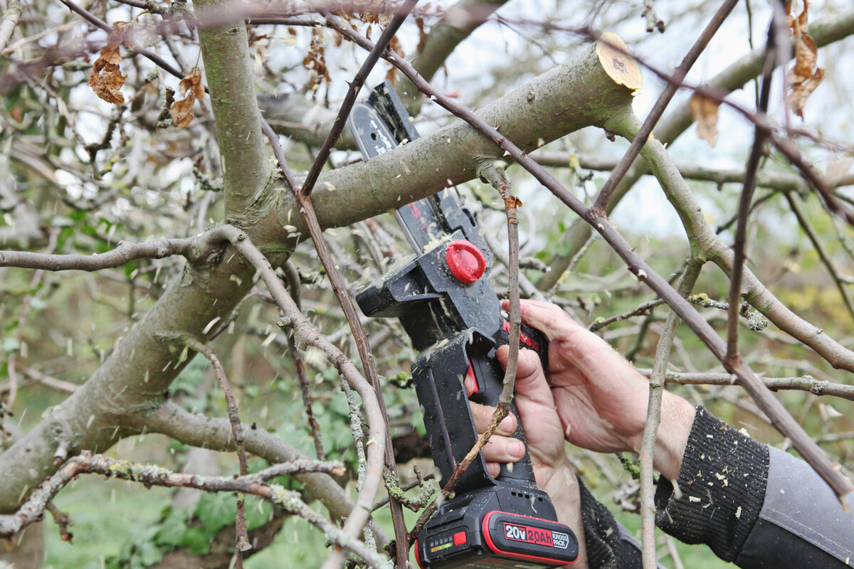 Diesmal ging es in die Obst- und Ziergehölze. Es waren Äste von Korkenzieherweide, Walnuss, Haselnuss, Kern- und Steinobst mit Durchmessern von 5 bis 20?cm zu kürzen. Um eine aussagekräftige Leistungsbeschreibung zu erstellen, wurden Scheibenschnitte an Weidenästen von 10?cm Durchmesser ausgeführt. Diese Sägevorgänge wurden jeweils so lange vorgenommen, bis der Akku leer ist. Dies geschah mit leichtem Druck.