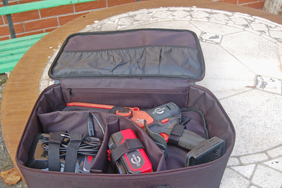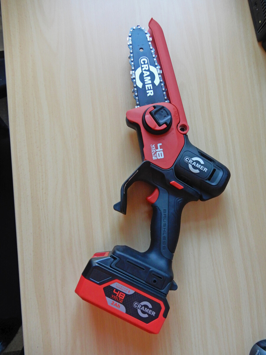 Kettenschmierung muss sein und sollte automatisch entsprechend der Motordrehzahl mechanisch (Kress KG343E, Milwaukee M18 FHS20-552, Stihl GTA 40) oder elektronisch (Pellenc) erfolgen. Das ist bei dem Cramer-Gerät 48MCSK2 leider nur manuell möglich. Das Folgemodell 48MCSX besitzt aber dann eine automatische Kettenschmierung.
