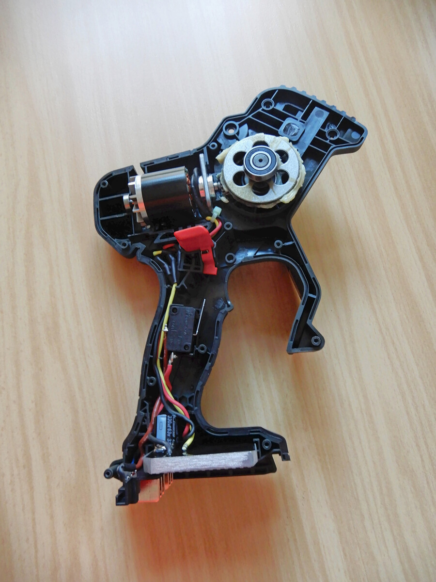 Man kann es nicht oft genug betonen, dass das geringe Gewicht nicht zu Lasten der Gesamtstabilität gehen darf. Auch so eine Pistolengriffsäge sollte leichte Stürze überstehen. Gehäusebrüche durch zu geringe Wandstärken oder Griffabbrüche durch zu kleine Verschraubungen dürfen nicht vorkommen. Denn aufgrund der viel geringeren Vibrationsbelastung bestehen die Gehäuse von Akkukettensägen im Gegensatz zu Benzinern aus starren Kunststoffschalen.