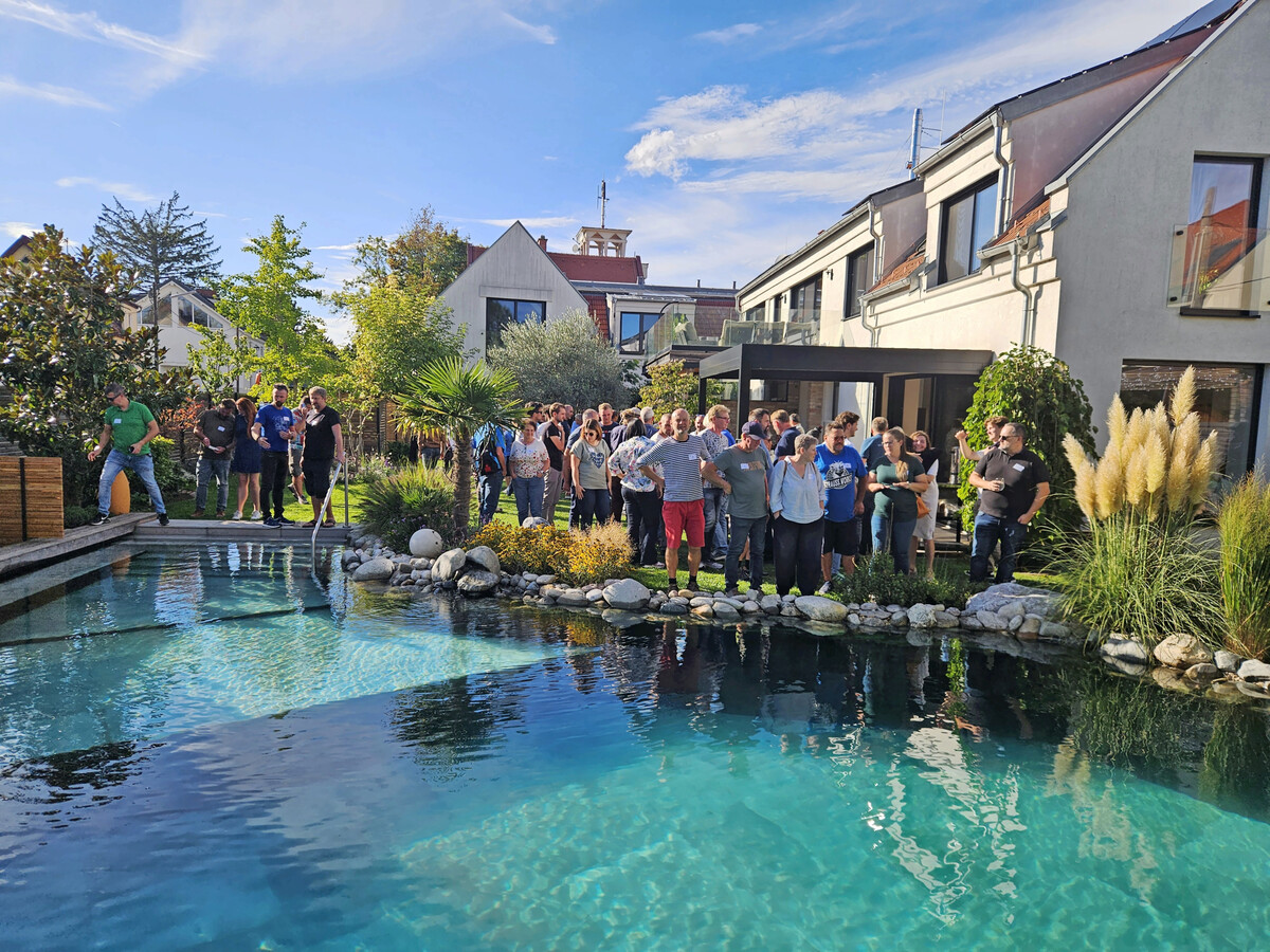 von Red/Franz Kubacek erschienen am 27.10.2025„Traumhaftes Wetter und ebensolche Schwimmteich- und Naturpoolanlagen beflügelte zum Aufwärmen die Stimmung der Teilnehmerinnen und Teilnehmer der zweitägigen Rundfahrt im Rahmen des 13. Internationalen Schwimmteichkongresses. In Vorträgen und Seminaren wird ja gerne über die Qualität der Anlagen von Mitgliedern im österreichischen Verband berichtet. Schöne Bilder gibt es viele und ebenso gute Computerprogramme für die Schönung von nicht so tollen Beispielen. So richtig geglaubt wurden die Erzählungen auf internationaler Bühne aber doch nicht so recht. Da war die Sternfahrt eine wichtige Maßnahme. Denn diese Anlagen in Natura zu sehen, war offenbar für viele ein Aha-Erlebnis und machte Lust auf´s Nachmachen.