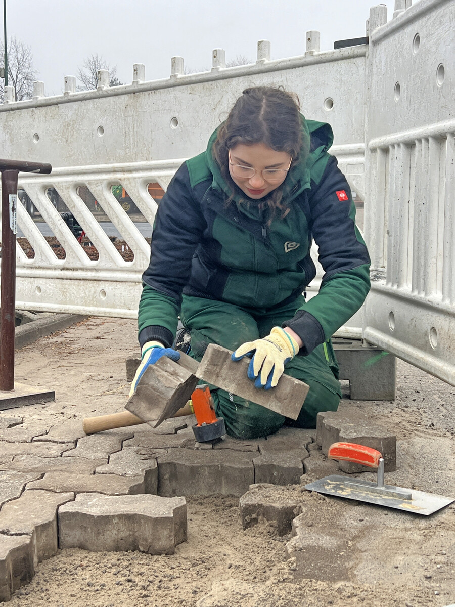 Auch das Spektrum der Aufgaben ist breit. Wenn es nicht die klassische Instandhaltung ist, sondern – wie aktuell – der Bau eines Müllstandplatzes, übernehmen die jungen Kollegen alles selbst: vom Einmessen des Plans bis zur Fertigstellung und Abnahme. „Das ist eine gute Chance, mit wenig Risiko viel zu lernen“, sagt Hoops. Die Resonanz der Kunden auf diese eigenverantwortliche Arbeitsweise ist durchweg positiv – und sorgt nicht selten dafür, dass Grewe auch für Folgeaufträge im Gespräch bleibt.