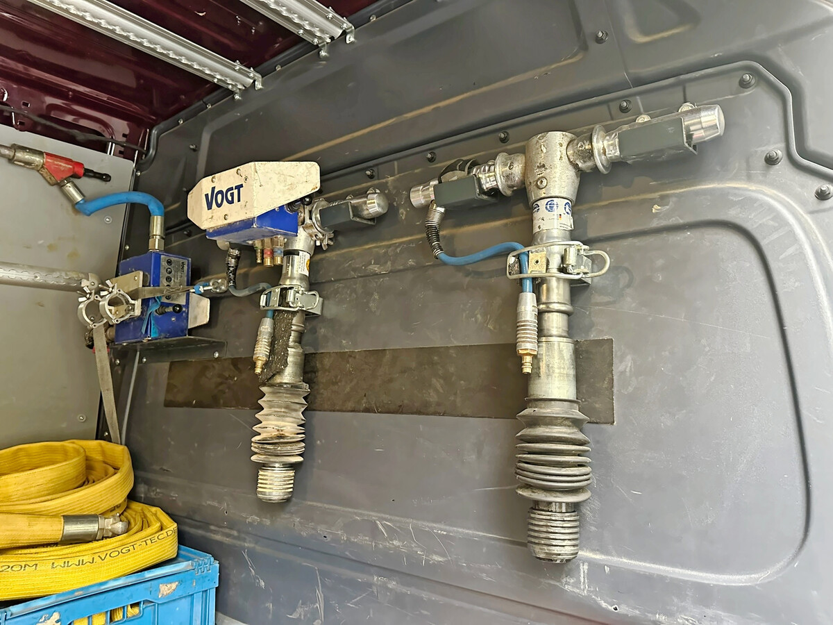 Fastenrodt kommt im ausgebauten Sprinter auf die Baustelle. In dem Fahrzeug hat er alle Werkzeuge – Druckluftlanze, Penetrometer, Profilspaten – und die benötigten Bodenhilfsstoffe. Er nennt drei Haupteinsatzgebiete: