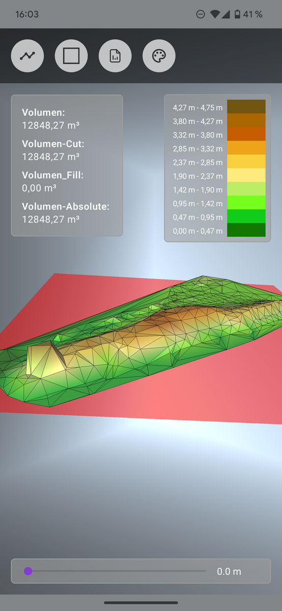 Bei einem anderen Projekt musste Joschi das Volumen von Abraum aus einem Graben bestimmen. Statt klassisch zu schätzen oder per Hand zu messen, nutzte das Team die AR-Funktion von Mikko/3tag. Einfach den Hügel abstecken, mit der App ein-, zweimal herumgehen, fertig. Das berechnete Volumen in m³ wird sofort in einem PDF-Report inklusive Screenshot festgehalten – ein Nachweis für Auftraggeber, ohne Pi-mal-Daumen-Werte oder Zettelwirtschaft.