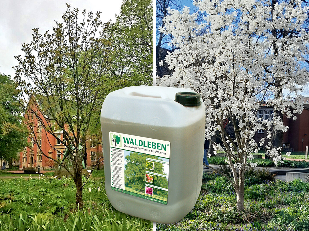Mit Doppelwirkung auf Boden und Pflanzen schafft WALDLEBEN als Vitalkur die Voraussetzungen zur Belebung auch wintermüder Bäume und Gehölze: Boden- und Stoffwechselaktivierung sowie angeregtes Wurzel- und Sprosswachstum können winterliche Schäden ausgleichen.