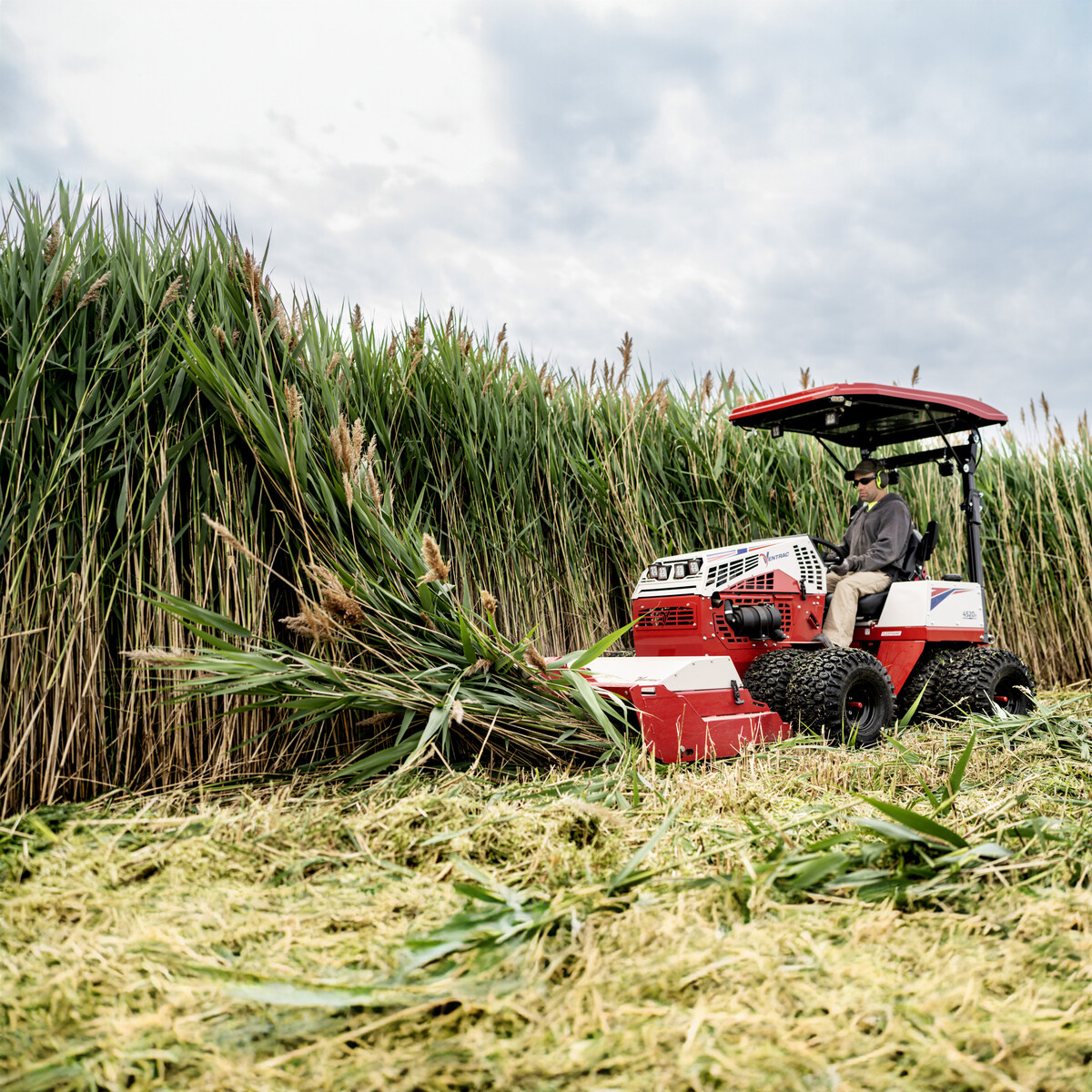 Unter den genannten hochspeziellen Aufsitz-Hochgrasmähern strahlt jedoch auch ein vielseitig verwendbarer Geländemäher heraus – nämlich der wahlweise mit Benzin- oder Diesel-Dreizylinder von Kubota erhältliche Ventrac 4520 von Toro. Als kleiner Knicktraktor kann er mit verschiedenen Anbaugeräten vielseitig eingesetzt werden, natürlich mit Schlegel- und Sichelmähwerken sowie mit Balkenmähwerken. Die Hauptanwendung besteht auch in der Grünflächenpflege, weswegen Toro auch eine Kooperation mit dem Balkenmähwerk-Spezialisten Kema eingegangen ist. Aber für die Ventrac-Maschinen sind auch Graben- und Umkehrfräsen, Andruck- und Stachelwalzen, Laubbläser und Winterdienstgeräte verfügbar.