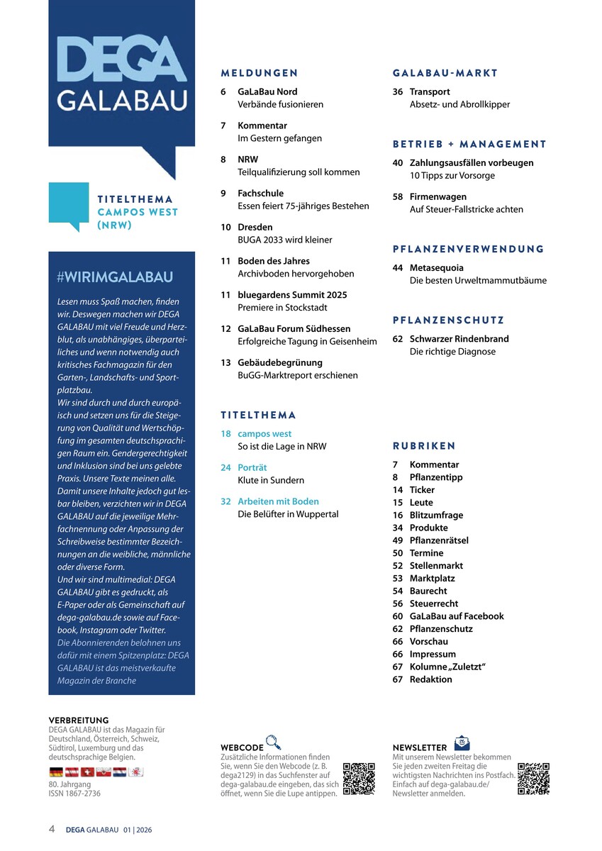 Gesamtes Inhaltsverzeichnis anzeigenTesten Sie das E-Paper sowie alle digitalen Inhalte von DEGA GALABAU...