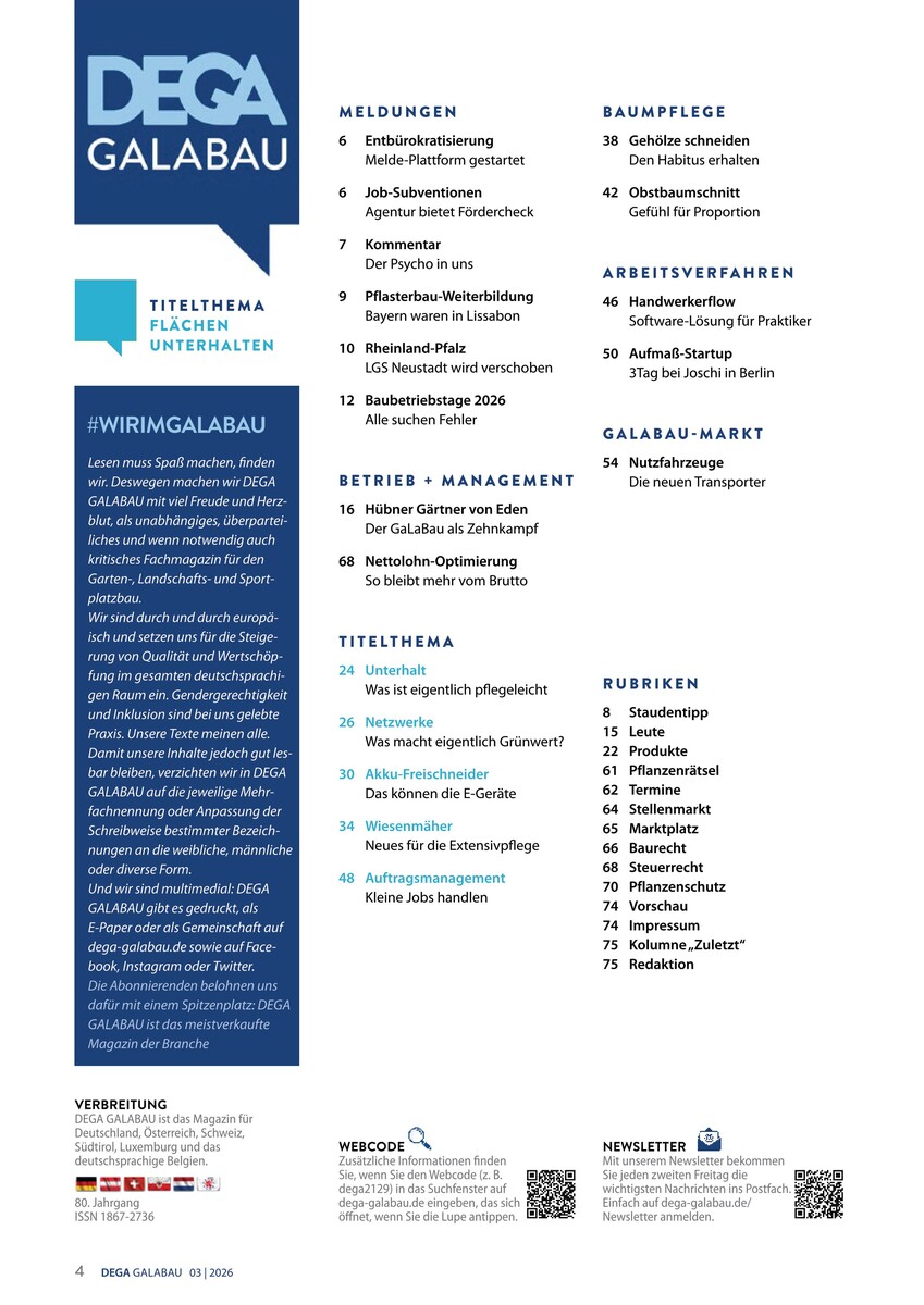 Testen Sie das E-Paper sowie alle digitalen Inhalte von DEGA GALABAU...