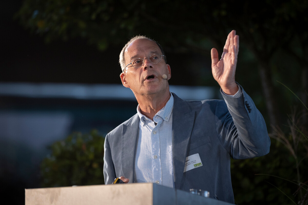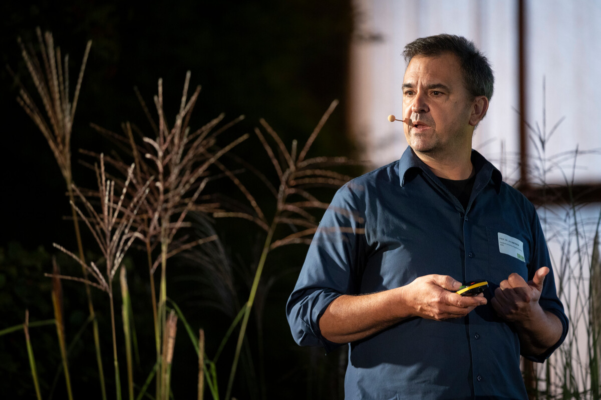 Auch Landschaftsarchitekt Henning Breimann von Breimann + Cie forderte in seinem Vortrag auf, die Komplexität unserer Entwürfe zu steigern, um die Biodiversität zu stärken. Hinsichtlich Bäume und Klima bräuchten wir ein transgeneratives Denken und mehr Demut im Umgang mit unserer Schöpfung. Breimann holte weit aus und referierte über den Wert von Wald, Hecken, Wasser und Boden, sowie die Bedeutung von oralen und olfaktorischen Erlebnissen im Garten.