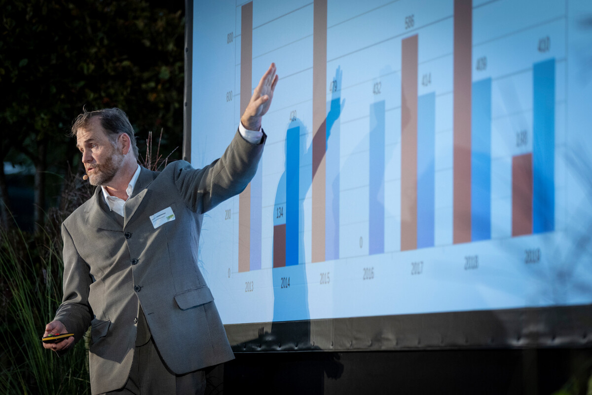 Bernhard von Ehren glüht für Bäume, das erlebte man in seinem Vortrag. Er gab Einblicke in die Baumschule und Baumschultechniken und hielt ein Plädoyer für große Bäume und deren Wert: „Wenn wir viel Grün in die Städte bringen, können wir dort die Temperatur um bis zu 10 Grad senken." Aktuell habe man jedoch eine negative Baumquote und zu wenige Vielfalt an Arten. Häufig sei der Wuchs durch die knappen Baumstandorte in den Städten rückwärts und das Absterben verfrüht. Mit der Züchtung sogenannter Zukunftsbäume, als klimaresilienter Arten reagiere die Baumschule von Ehren aktiv auf die klimabedingt veränderten Ansprüche in unseren Städten.