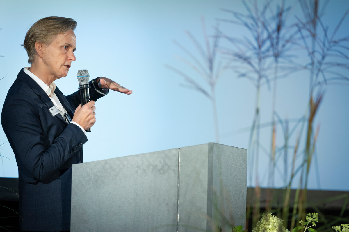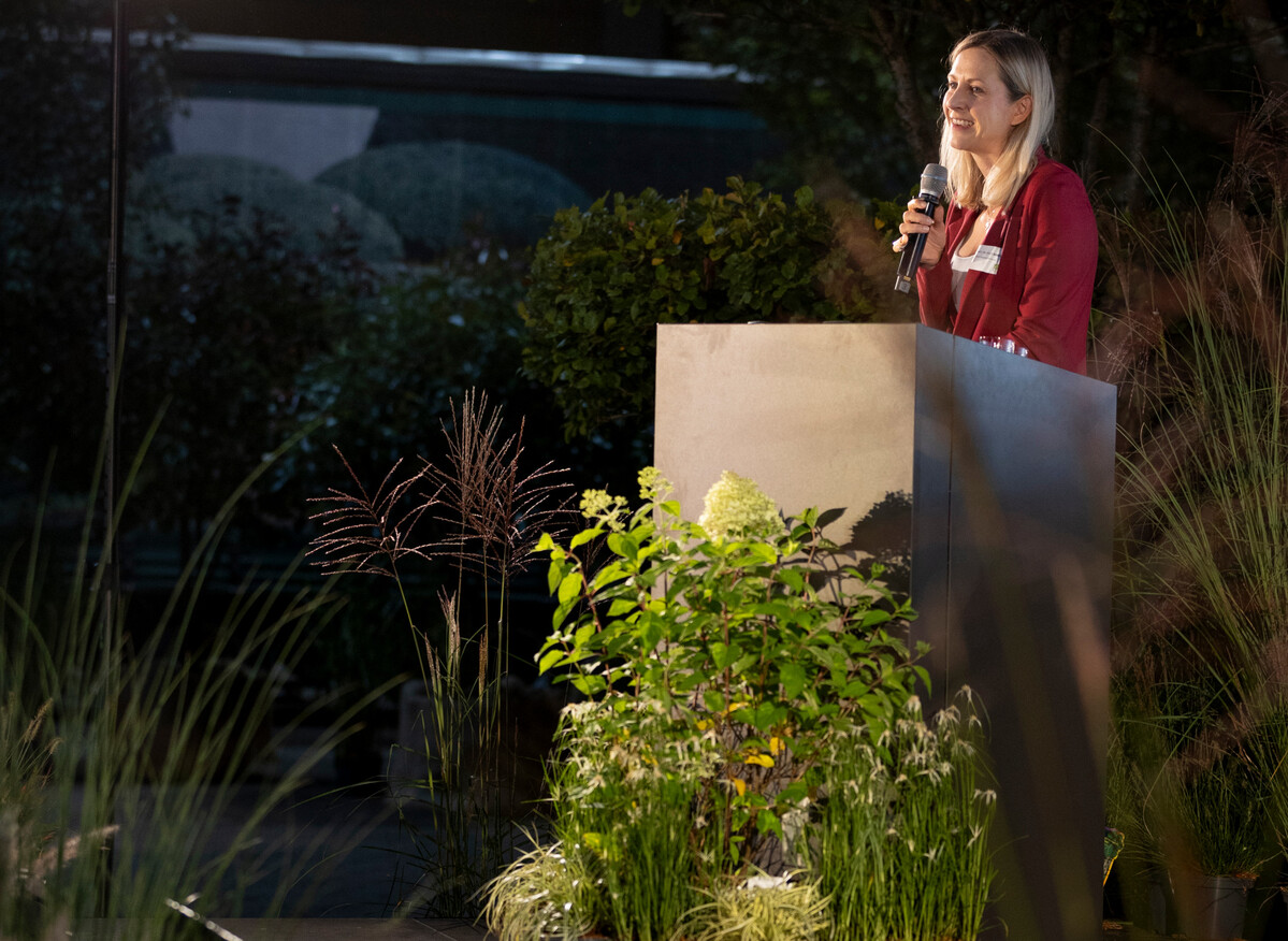 Nadja Kabisch, Professorin an der Leibnitz University Hannover, sprach über naturbasierte Lösungen für urbane Klimawandeladaptionen und stellte einige ihrer Forschungsprojekte vor, bei der Wasser zur Kühlung eine Schlüsselposition einnimmt, das immer mehr und häufiger eingesetzt werde.
