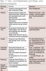 Inzwischen werden vielerorts Splitt, Kies und Schotter als Pflanzsubstrat eingesetzt. Mit etwas Geduld, die Einwachsphase benötigt eben etwas länger, entstehen bei standortangepasster Arten- und Sortenwahl attraktive und vor allem pflegeleichte Anlagen.