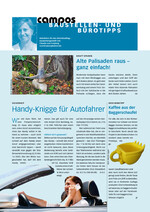 Alte Palisaden raus – ganz einfach! / Handy-Knigge für Autofahrer / Kaffee aus der Baggerschaufel / So kommen Sie am Hörer schnell ans Ziel / Säge sicher ablegen
