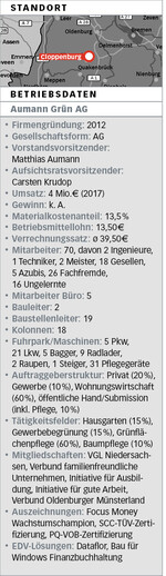 Eigentlich sollten es am Anfang maximal 20 Leute sein, hatte sich der Cloppenburger vorgenommen. Doch die Zahl war schnell überschritten. 2014 sind es schon 25, ein Jahr später hat sich die Zahl verdoppelt. Sechs Jahre nach dem Start beschäftigt Aumann grün bereits 70 Leute – Tendenz steigend. „Wir wollen natürlich nicht auf Teufel komm raus wachsen, sondern nur mit langfristiger Perspektive", versichert Aumann. „Das muss sich auch mit den Auftraggebern entwickeln."