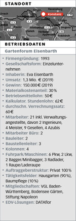 Manchmal geht es auch eine Nummer kleiner. Denn manche Kunden wollen nur eine praktische Lösung. Das ist dann ein Fall für Projektleiter Ingo Haberbosch. Der ist pragmatisch, setzt Funktionales einfach um, wohlwissend, dass die kleinen Aufträge eine Firma flexibel machen. Und die Unternehmerin will auch diese Leute bedienen. „Das ist etwas ganz Wichtiges für mich. Ich will nicht versnobt sein. Ich will nicht, dass Kunden denken, wir machen nur die Gärten ab 100.000 Euro", betont Eisenbarth.