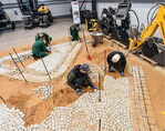 Singbeil Bau ist auch Mitglied der Initiative für Ausbildung. Auf Nachwuchs wird besonderen Wert gelegt. Besonders freut sich der Norddeutsche, wenn einer der jungen Leute in den Pflasterkursen Feuer für das alte Handwerk fängt. Fabian, einer seiner eigenen Azubis, ist letztes Jahr Landesbester in Niedersachsen bei den Straßenbauern geworden. Zusammen mit einem weiteren Azubi hat Singbeil mit ihm, der Baufirma Benckendorf und der IG ein Projekt in Peine durchgezogen. Die beiden Auszubildenden haben eine Woche lang eine Auffahrt mit Naturstein befestigt und haben sich dabei filmen lassen. Daraus ist ein Imagefilm (siehe links über QR-Code) entstanden, mit dem die IG jetzt werben will. „Unser Ziel ist, wie bei der Ausstellung, dass man das Pflasterhandwerk wieder ganz anders wahrnimmt", erklärt der Unternehmer.