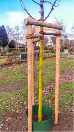 Dass Stämme gekalkt werden, um sie vor Schäden durch hohe Sonneneinstrahlung (besonders im Winter) zu schützen, sei ihm ja bekannt. Aber was sei dieser Anstrich in gelbgrün? Da konnte die Gemeinde schnell helfen: Denn hierbei handelt es sich quasi um die Grundierung, den Voranstrich für die Stammschutzfarbe von Arbo-Flex 7 (gibt es zum Beispiel bei www.meyer-shop.com). Wollen wir hoffen, dass der Stammschutz dann auch noch aufgetragen wird.