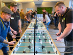 Es war eine schöne Idee von Davit Arican, die Gemeinde zu einem Kicker-Turnier einzuladen. Die Firma Dataflor in Göttingen stellte dafür Räumlichkeiten und Kickertische zur Verfügung und stiftete auch gleich noch Preise. Dazu spielte das Hiphop-Startup „Beetbuddys“ einen Live-Gig und am Ende siegten Michael Beckers und Tristan Seeger von Laader Gartendesign aus Isselburg. Die beiden durften einen Napoleon-Grill mit nach Hause nehmen. Zweiter wurde das Team von der Miamapo GmbH vor den Mitarbeitern von Gartenfit aus Hamburg.