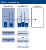 Wer sich nicht nur als sein Vermögensverwalter sieht, der jährlich Gewinne abschöpft, sondern als Unternehmer, der mit klugen Investitionen ein Unternehmen und ein ausreichendes Vermögen aufbaut, braucht eine Bilanz, welche die Komplexität des Unternehmertums mit allen relevanten Positionen abbildet. Sie ist das Spiegelbild einer Unternehmerstrategie. Diese muss drei Bereiche im Fokus haben. Das Unternehmen ist zu entwickeln, um zum nachhaltigen Kapitalaufbau im Privatbereich zu kommen und sich damit einen Freiraum zu schaffen. Diese Entwicklungen verlaufen, wenn richtig konzipiert, gleichförmig ab. Das Modell (Grafik rechts) verdeutlicht die Wechselwirkungen. Die finanziellen Herausforderungen für Unternehmen und Privatbereich sind hoch....