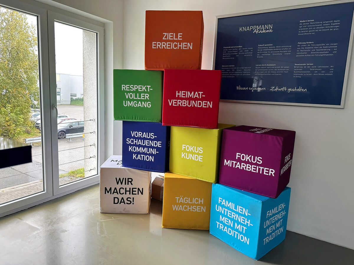 Unter dem Hashtag #generationenfähig hat Lena Yigen für Knappmann eine Aktion ins Leben gerufen, die das Thema Zukunft plastisch machen soll. Dabei geht es nicht nur um den Generationenwechsel im eigenen Haus – also die Nachfolge an der Spitze. Es geht auch um die vielen Generationen, die schon in dem Unternehmen arbeiten, um den Nutzen der Knappmann-Projekte für ganz unterschiedliche Generationen und den Wert der Anlagen für zukünftige Generationen – etwa Parks, die auch in mehreren Generationen noch den Menschen in ihren Einzugsbereichen dienen. Um zu zeigen, wie vielfältig – und damit zukunftsfähig das Unternehmen ist, hat sie einen Film mit den Mitarbeitern drehen lassen. Zur Premiere im Oberhausener Cinestar trug jede Generation ein Knicklicht in entsprechender Farbe, damit alle sehen konnten, wie viele Generationen es jetzt schon sind. Und auch den Wechsel an der Spitze begleitet Knappmanns jüngste Tochter, die im Unternehmen das Personalwesen und das Marketing verantwortet: „Unternehmerische Nachfolge soll kein Angstmacher sein, wir wollen das kommunikativ begleiten“, erklärt Lena Yigen, die zusätzlich vier Semester Wirtschaftspsychologie absolviert hat.