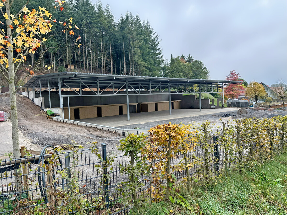 Der Bau der Halle ist ein wichtiger Baustein in einem zweiphasigen Konzept zur Neuausrichtung des Betriebsgeländes, das mehrere Ziele verfolgt. „Ich möchte nicht, dass es drinnen und draußen gibt. Ich möchte, dass wir eins sind“, beschreibt Friedrich Klute eine der Herausforderungen, die den meisten größeren Unternehmen begegnet. Die Halle und das Nebengebäude, das im nächsten Schritt umgebaut werden soll, haben eine Sichtbeziehung – ein großer Hof. Büro, Mitarbeiterräume und Logistikfläche sollen auch optisch zusammenwachsen. Gleichzeitig wird durch die Halle auch die Einfahrt verschoben, was den Privatbereich der Klutes – sie wohnen direkt am Betrieb – etwas vom alltäglichen Hauptverkehrsstrom abtrennen soll. Denn die Nähe zum Arbeitsplatz heißt auch, nie so richtig abschalten zu können.