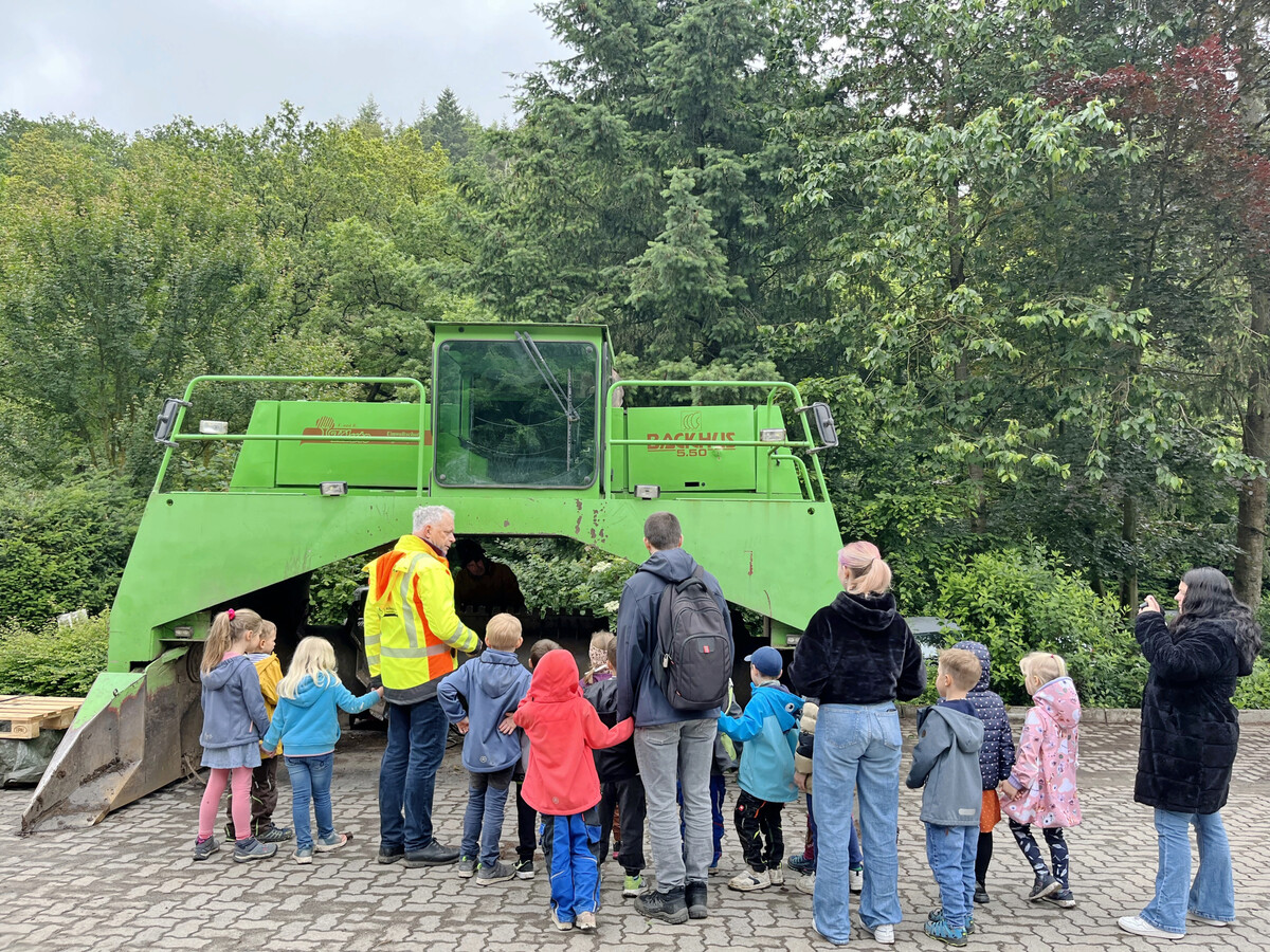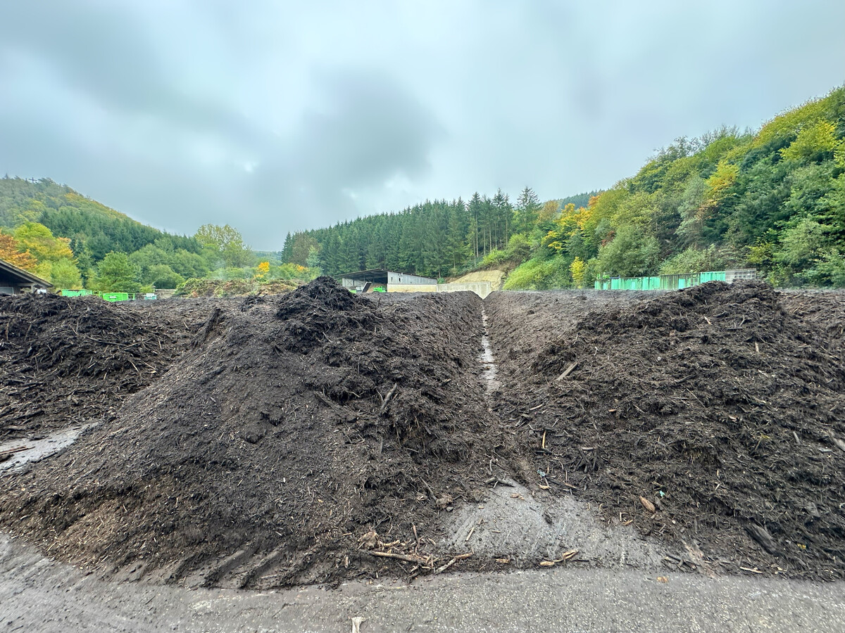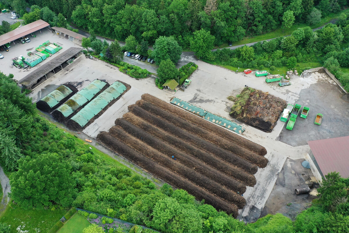 Gerade das bei Pflege und Baufeldräumung abfallende Material kommt per Container oder Pritsche nach Stockum ins Kompostwerk. Dort wird nicht nur der Grünschnitt angenommen, sondern auch Boden und Baustellenreste, die auf dem Hof in die dafür bestimmten Container sortiert werden. Boden kommt ins Trockenlager, wo später die Organik zur Kompostierung ausgesiebt und der Rest aufbereitet wird. „Die Halle werden wir noch vergrößern, weil es mehr zu recyceln gibt“, erklärt der Unternehmer beim Rundgang. Boden mit organischem Anteil sei ja praktisch nicht mehr zu verkippen. Der Grünschnitt wird sortiert, zerkleinert, zu Mieten aufgesetzt und drei Monate lang wöchentlich umgesetzt. Eine Soleführung im Boden nimmt die Abwärme aus der Kompostierung auf und liefert Wärme für den Betrieb und die beiden Häuser der Klutes. Noch mehr Energie wird in der Anlage auf der Hellefelder Höhe frei. Dort liefert die rein mit Abfall betriebene Biosgasanlage Strom für 1.200 Haushalte. „Wir produzieren nur gütegesicherten Humus mit Rottegrad 4 und 5“, versichert Klute. Der Landschaftsbau sei gleichzeitig auch größter Kunde bei Klute Umwelt. Denn im Sauerland mit seinen schweren Lehmböden sind Substrate aus Humus, Boden, Rheinsand und Splitt 2/5 als Grundlage für Pflanzungen sehr gefragt. Kompostwerke und die Biogasanlage betreibt Friedrich Klute zusammen mit seinem Bruder Florian Beimel. Der Maurer- und Steinmetzmeister hat ein Jurastudium abgeschlossen und ist nicht nur in Sachen Vertrags- und Prozessmanagement ein wertvoller Partner.