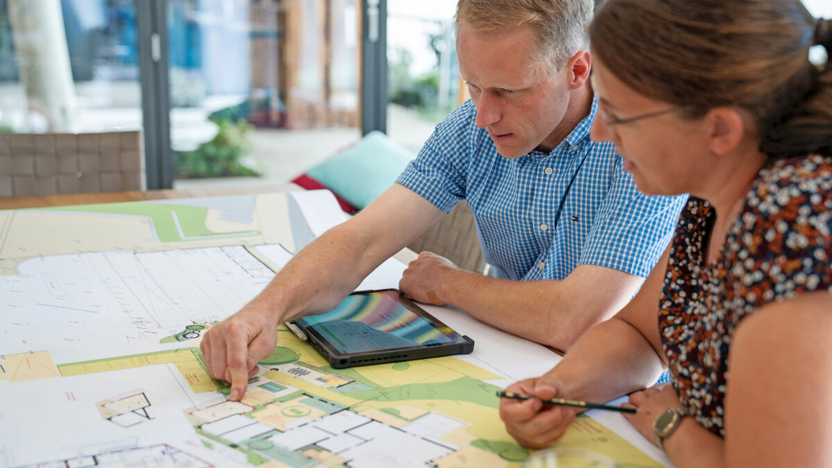 Sechs Jahre später gab es für den Nachfolger eine persönliche Krise. Er hatte übernommen und war dabei gar nicht zum Nachdenken gekommen, hatte auch keine Zeit gefunden, die eigenen Ziele von den gefühlten Erwartungen zu trennen. „2018 hatte ich einen Hänger. Da hatte ich keinen Bock mehr“, pointiert Klute. Die Verantwortung für alle Prozesse in dem 70-Mitarbeiter-Betrieb lastete auf seinen Schultern, dazu kamen Aufgaben, die gar nicht zu seiner Mentalität passten. Friedrich Klute ist ein ruhiger, technisch orientierter Mensch, dem die Bauabläufe am Herzen liegen und der sich dafür interessiert, wie die Dinge funktionieren. Er hat das japanische Ordnungsprinzip Kaizen im Unternehmen eingeführt, um den organisch gewachsenen Betrieb konsequent übersichtlich und damit führbar zu machen. Manche Dinge, die zu seinen damaligen Aufgaben gehörten, wollten dagegen gar nicht so recht passen und raubten dem Unternehmer viel Kraft. Doch für die Firma wurde die Krise zum Glücksfall, weil es mit Monika Klute für den Unternehmer nicht nur einen persönlichen Anker gab, sondern auch eine Partnerin, die wertvolle Kompetenzen mit ins Unternehmen brachte. Aus der „Frau vom Chef“ – einer Rolle die „nicht Fleisch und nicht Fisch ist“, wie die 38-Jährige lachend meint, wurde eine Co-Chefin auf Augenhöhe. „Was ich mitbringe, ist Empathie und Struktur“, sagt Monika Klute. „Einerseits das Gegenüber zu sehen und andererseits zu sagen, wir brauchen das so und so.“ Seit 2023 ist sie gleichberechtigte Geschäftsführerin. Eigentlich hat die Landwirtstochter Grundschullehramt studiert. „Ich hatte bis dahin an der freien Wirtschaft vorbeigelebt“, schmunzelt sie. Also machte sie statt des Referendariats zwei Jahre eine kaufmännische Ausbildung im Betrieb von VGL-Präsident Josef Mennigmann und legte anschließend noch die Ausbildung und Prüfung zur Betriebswirtin bei der Handwerkskammer ab; zusammen eine gute Grundlage für einen Geschäftsführerinnen-Job im GaLaBau.