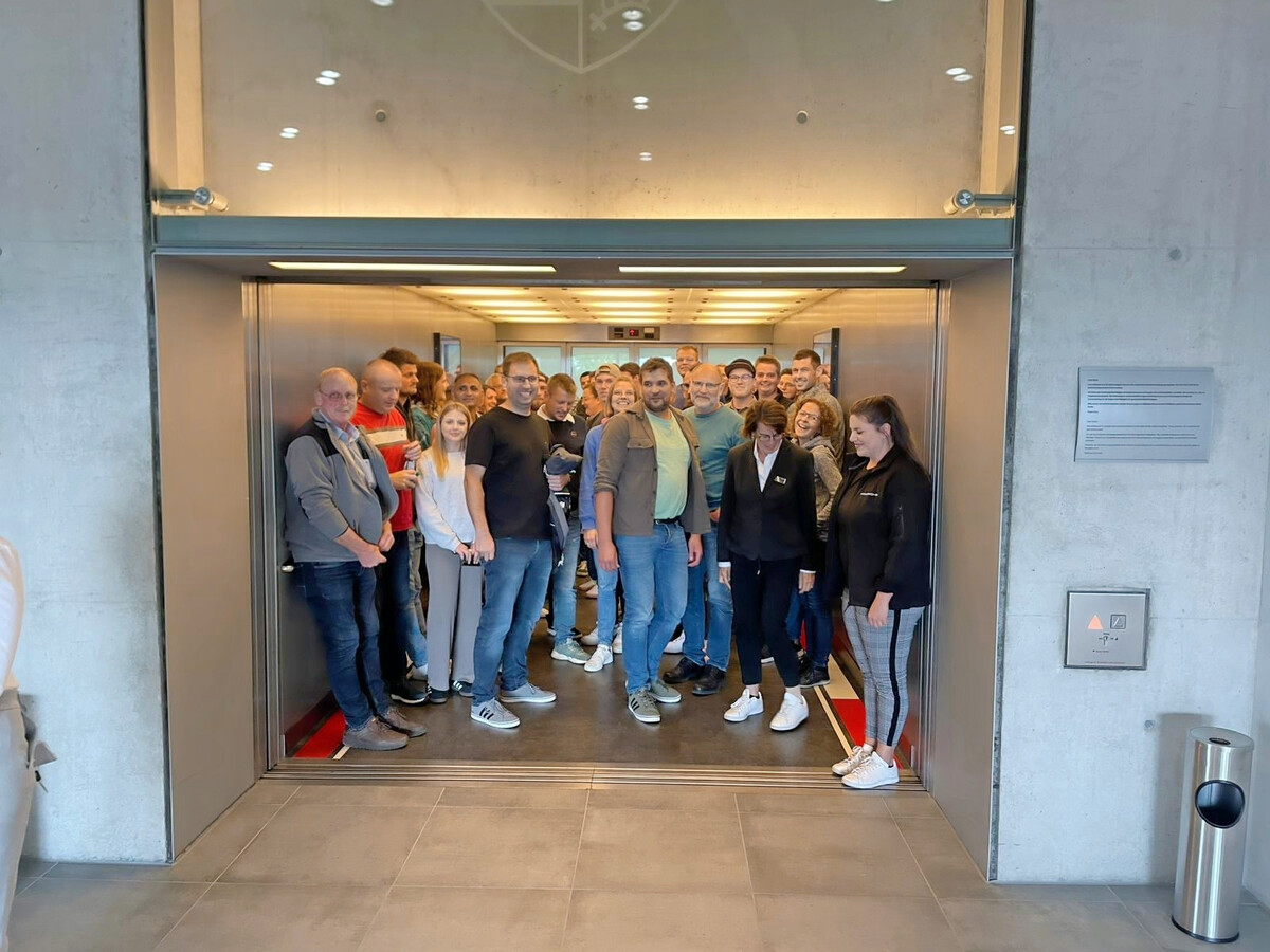 Bei Friedrich Klute hat das eine ganz neue Motivation freigesetzt. Als wir zu Besuch sind, zeigt er uns mit leuchtenden Augen den neuen Betriebshof der Firma, den man neudeutsch schon fast als „Logistik Hub“ bezeichnen könnte. Hinter den bestehenden Gebäuden haben die Bagger in die Flanke des Rehbergs eingeschnitten und ein Plateau für eine 1.200 m² große überdachte Fläche geschaffen. 5.000 m³ Kieselschiefer mussten dafür bewegt werden. „Das war natürlich was für Papa und seinen Bagger“, lacht der Unternehmer. Zahlreiche Kabinen schaffen Raum für die Ausrüstung der Teams. Ein Portalkran an der Decke ermöglicht die Beladung der Fahrzeuge – auch mit den Baustellencontainern und den Geräten, die auf der zweiten Ebene in der Halle stehen. Wallboxen und Laderäume für Akku-Geräte geben schon einen Hinweis auf die zukünftige Antriebstechnik. In das Projekt sind die Kaizen-Erfahrungen ebenso eingeflossen wie die Ideen des Projektteams, das – wie es jetzt bei allen umsetzungsorientierten Aufgaben passiert – für den Bau der Halle gebildet wurde.