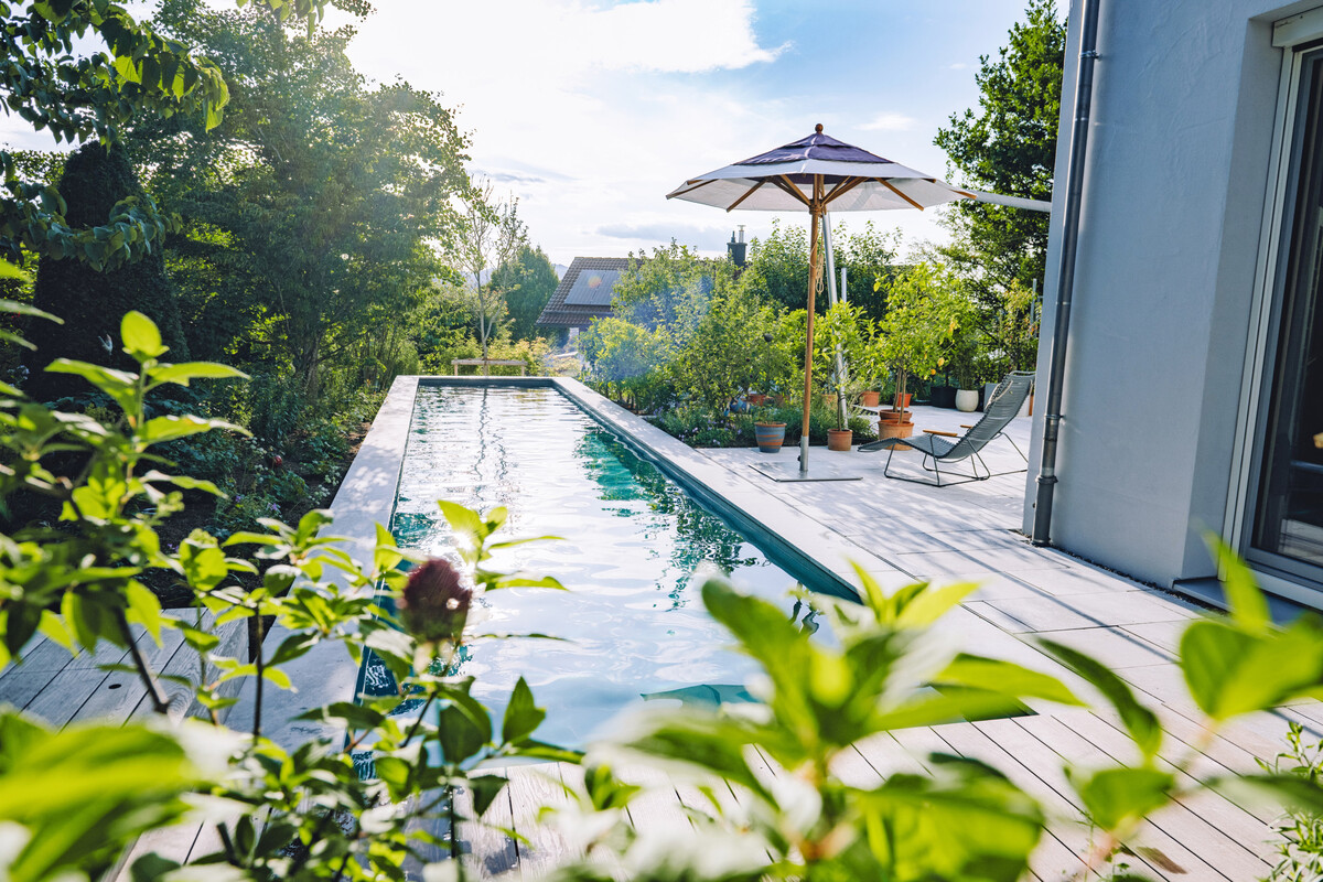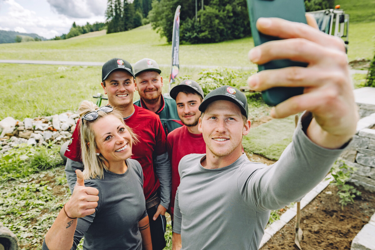 Apropos Gärtner von Eden – seit 2004 ist Hübner dabei. Anfangs haben sie ihn auf der Messe belächelt, als er sich als 3-Mann-Betrieb für eine Mitgliedschaft interessierte. Bei einem Gesprächstermin auf der GaLaBau hat man ihm noch prophezeit, dass er werde wachsen müssen, um die Kriterien zu erfüllen. Doch kurz darauf war es dann soweit. „Die Entscheidung zu den Gärtnern von Eden zu gehen, habe ich nie bereut“, sagt Hübner heute. „Es ist zwar relativ kostenintensiv, aber es ist für mich gerade wegen der ERFA-Treffen und dieses Begegnens auf Augenhöhe so wertvoll.“ Dabei sind die Gärtner von Eden jetzt zu zweit in der Region, denn in Heimenkirch, kaum 15km entfernt sitzt Herrhammer Gärtner von Eden (siehe DEGA GALABAU 7/2017). Geht das eigentlich mit zwei GvE-Betrieben? „Ich glaube in den 22 Jahren gab es zwei Kunden, bei denen wir beide im Gespräch waren“, schaut Hübner zurück. Es gebe halt „Hübner-Kunden“, oder „Herrhammer-Kunden“ schmunzelt der Wahl-Allgäuer. Sobald ein anderer GvE-Betrieb im Spiel sei, mache er eh kein Angebot, versichert der Unternehmer. Wenn es um Pools geht, kommt auch der Zusammenschluss der Genossenschaft zum Tragen. Hier arbeitet das Allgäuer-Unternehmen mit den Kollegen von Schleitzer Gärtner von Eden aus München eng zusammen, die Biotop-Partner sind. Der einheitliche Markenauftritt hinterlässt nach Außen ein stimmiges Gesamtbild. So können sich die Genossenschafts-Mitglieder stärkenorientiert unterstützen. Ein weiterer unkomplizierter Mehrwert ist der Azubi-Tausch und die GvE-Akademie. Dies wird für die rund 1400 GvE-Mitarbeitenden über eine eigens entwickelte App koordiniert.
