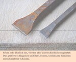 Warum gibt es aber von den Handwerkzeugen dieser Machart mit durchgehender Schneide zwei Größen? Und warum sind diese zwei Größen je nach Werkzeugschmied/ Lieferant gar nicht so klar voneinander zu unterscheiden?