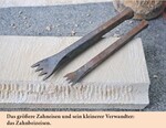 Wobei die Größe des Eisens bei seinem jeweiligen Einsatz doch wieder eine Rolle spielt. Denn das Zahnbeizeisen kommt dann zum Einsatz, wenn der Steinhauer eine Nut in eine Natursteinfläche schlagen will, um beispielsweise sein Werkstück mit einem Profil zu versehen.