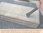 Dazu ist zu sagen: Je näher die Bearbeitung eines Natursteins an einer seiner Kanten erfolgt, je bruchgefährdeter ist der Stein. Daher haut der geübte Steinhauer so gut wie immer in einem möglichst flachen Winkel von der Steinkante ausgehend in Richtung Steinmitte.