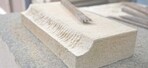 Oder das Profil wird, hauptsächlich im Sandstein gerne genommen, abgerieben. Wenn ein Sandstein abgerieben wird, nimmt der Steinhauer einen Korundschleifstein in die Hand und schleift aus dem Profil so lange die Bearbeitungsspuren heraus, bis sie nicht mehr zu sehen sind. Wie man sieht, ist das mit dem Profilhauen im Grunde genommen kein Hexenwerk.