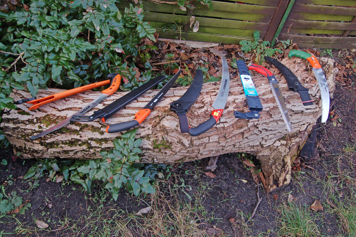 Der Praxistest erfolgte an Obstgehölzen (Apfel, Pflaume), Koniferen (Fichte, Mammutbaum) und Walnuss – an Ästen von 2 bis 8 cm Durchmesser in frischem und trockenem Holz. Alle Sägen erledigten die Aufgaben gut bis sehr gut. Die Schnittflächen waren glatt und sauber, und man konnte mit allen Sägen problemlos nahe am Stamm arbeiten.