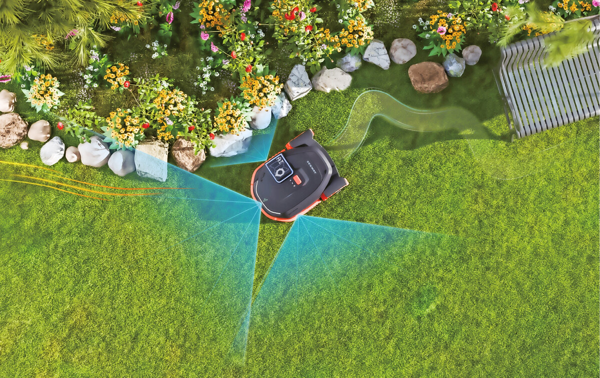 Das Visual Inertial Odometry (VIO) ist speziell dafür entwickelt worden. Die sogenannten Fischaugenkameras mit 140°-Winkel sind in der Lage, die Objekte zu erkennen. Sie sind dank KI ständig lernfähig, um neu hinzukommende Gegenstände oder Lebewesen als Hindernisse zu sichten und diese als solche zu identifizieren. Das ist besonders wichtig, weil Tiere (Kröten, Blindschleichen) oder Gegenstände (Gartenschläuche) in Erd- und Grüntönen noch nicht ohne Weiteres als Hindernis erkannt werden.