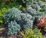 Vermutlich denken Sie jetzt an (grau-)blaulaubige Gräser oder Funkien – aber es geht noch besser: Denn die blaublättrige Sorte der Weinraute bringt das wohl intensivste ganzjährige Blau in Pflanzungen, das man sich vorstellen kann – quasi von Januar bis Dezember. Sie verträgt überdies Hitze, Trockenheit und intensive Strahlung. Ein nicht zu starker Rückschnitt im Frühjahr und nach der sommerlichen, im Vergleich zur Art jedoch etwas verminderten Blüte, führt zu besonders dichtbelaubten, buschigen Halbsträuchern. Der angenehme Geruch und – für den Insektenliebhaber wichtig – das reiche Pollen- und Nektarangebot sind weitere Vorzüge. Vorsichtig muss man nur mit Berührungen sein: Das Laub ist fototoxisch! Daher am besten an wolkigen Tagen...