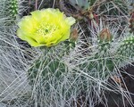 Der aus Nordamerika stammende Feigenkaktus, Opuntia polyacantha O. missouriensis), ist gut frosthart und gegenüber Nässe nicht so empfindlich. Optimaler Standort wäre das sonnigste und trockenste Plätzchen im Steingarten (A/M/St). Diese Gattung ist sehr ausdauernd. Die Glieder des Feigenkaktus sind etwas aufstrebend, fast rund und kaum 10cm breit. Die Dornen sind 4 bis 8cm lang und stehen in Büscheln bis zu 12 Stück. Die niederliegenden Kolonien werden etwa 20cm hoch. Fast hätte ich die Blüte vergessen. Es ist ein richtig auffälliges Quitschgelb, in manchen Situationen vielleicht etwas zu kräftig, aber fröhlich. Die Bienen stehen drauf. Eine äußerst empfehlenswerte Art mit super Gartenformen! Partner: Diese Gattung/Art sollte eher unter ihresgleichen stehen, das heißt in einem Sukkulentenbeet. In manchem Alpinum wirkt sie eher störend. Yucca, Sedum, Sempervivum, sedoides ‘Alba’, Sporobolusheterolepis ‘Cloud’. Die Varietät Opuntia polyacantha var. trichophora sieht einfach nur lustig aus. Anstatt der festen Dornen, meist nur drei Stück, hat sie bis zu 6cm lange, haarähnliche Gebilde. Dadurch wirkt die Pflanze sehr hell und freundlich. Vorsicht, der Schein trügt! Die Pflanze erinnert mich immer an eine Zeichentrickserie aus meiner Jugend: „Es war einmal ...(der Mensch“ o.ä.) Dieses kleine behaarte Männchen hatte schwer Ähnlichkeit mit diesem Kaktus.