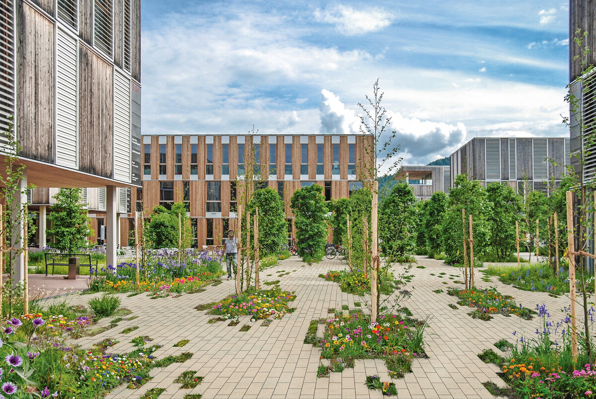 Braun-Steine: Mut zur „Grünen Lücke“ – unter diesem Motto hat Braun-Steine in den vergangenen Jahren drei Pflastersteinsysteme für den öffentlichen, gewerblichen und privaten Freiraum entwickelt, mit denen sich der Grünanteil der Fläche auf bis zu 50 % erhöhen lässt. Jüngstes Produkt ist das sechseckige Pflastersystem Polyline. Dabei wechseln sich Vario-Steine mit breiten Fugen, halbe Pflastersteine und Flächen ohne Stein individuell ab. Abstandshalter sorgen dafür, dass sich nichts verschiebt oder verdreht.