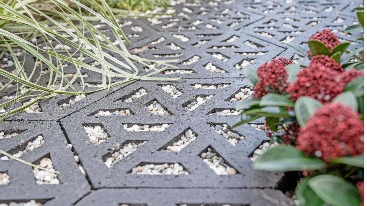 Beim Ökopflaster im Langformat handelt es sich um eine Rasenplatte, die mehr Grün in die Gestaltung von Einfahrten, Parkplätzen und Gehwegen bring. Sie zeigt zudem, wie sich das seit Jahrzehnten bekannte Doppel-T-Format von Pflastersteinen innovativ verwandeln kann. Bei seinen Rasengittersteinen setzt Schellevis auf ein sechseckiges Format, das mit seiner hexagonalen Form sowohl gestalterische als auch ökologische Ansprüche erfüllen will. Hier kann sich das Grün in trapezförmigen Öffnungen ausbreiten.