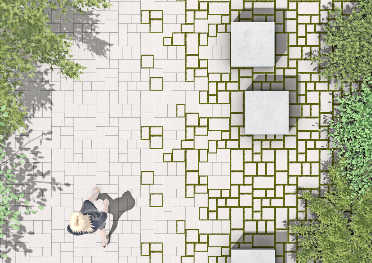 Im privaten und öffentlichen Raum bereits bewährt hat sich der Vegetationsfugenstein Vario. Ihn gibt es in zwei Varianten. Die Abstandshalter ermöglichen kreative Flächengestaltungen mit Fugen von 30 oder 55 mm. Kombiniert werden kann er mit dem Vegetationsflächenstein aus dem Vario-System. Seine Steinfläche ist trichterförmig geöffnet und kann als Vegetationsraum genutzt werden. Diese Steine bieten mit ihrem exakt zum Flächenverbund passenden Rahmen eine stabile Basis, ohne dabei die Tragfähigkeit oder den Verbund des Belags zu schwächen. Für die Herstellung wird ressourcenschonend überschüssiger Beton verwendet, was die Produktion noch nachhaltiger macht.