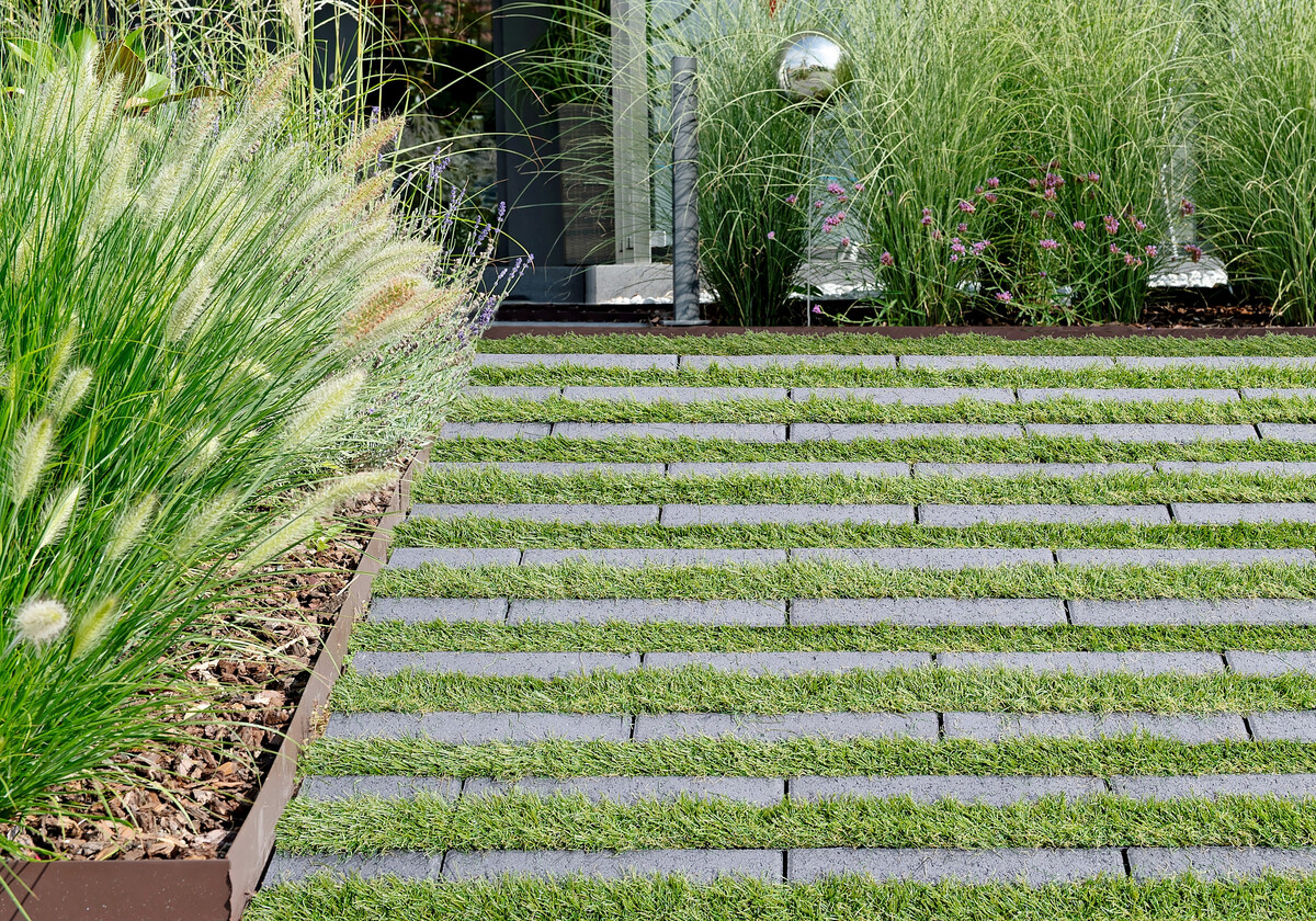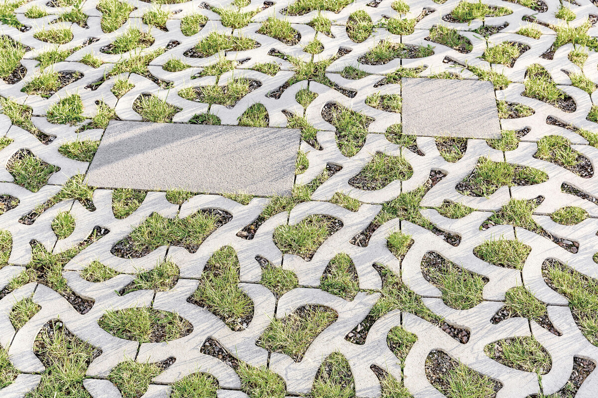Rasenfugenpflaster verbindet tragfähige Pflastersteine mit begrünten Fugen. Es leistet damit einen Beitrag zur Entsiegelung von Flächen. Wir haben uns umgesehen, wie Betonsteinhersteller Technik, Gestaltung und Nachhaltigkeit kombinieren.